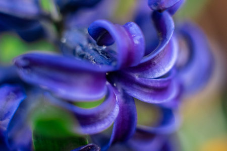 Close-up of hyacinth flower displaying vibrant textures. Intense purple hyacinth petals in stunning macro detail.