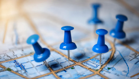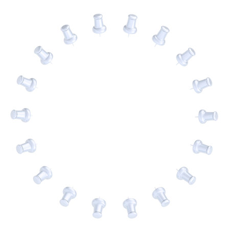 Colorful plastic push pins scattered on a white background, symbolizing organization, office work, and creativity. Perfect for business, education, and stationery concepts
