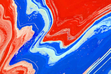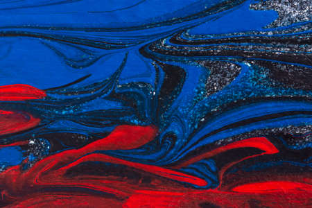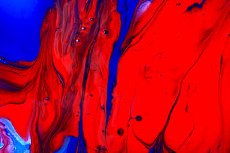 Abstract background of acrylic paints in red and blue color tones