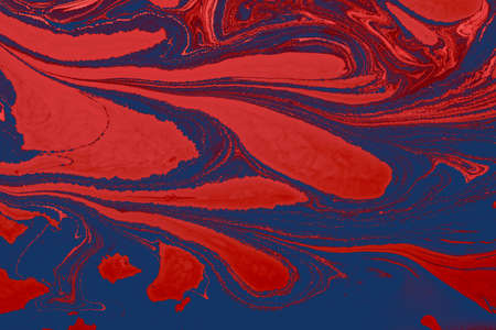 Abstract fluid art background navy blue and dark red colors. Liquid marble. Acrylic painting on canvas with gradient and splash. Alcohol ink backdrop with brushstroke pattern.