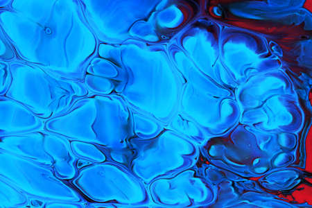 Abstract background of acrylic paint in blue and red tones