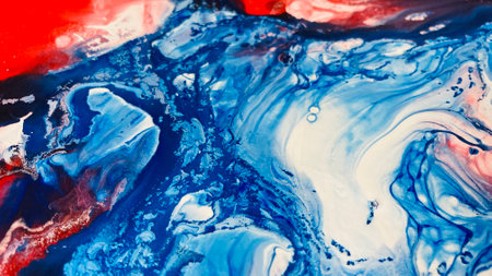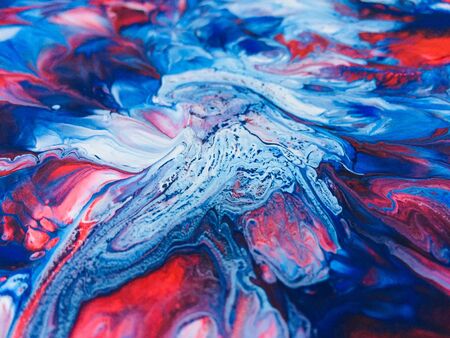 Close Up Colorful Blue Red White Fluid Pouring Abstract Art Acrylic Painting Texture Background