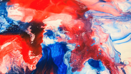 Close Up Colorful Red Blue White Fluid Pouring Abstract Art Acrylic Painting Texture Background