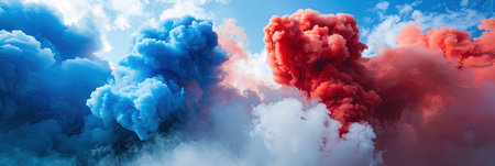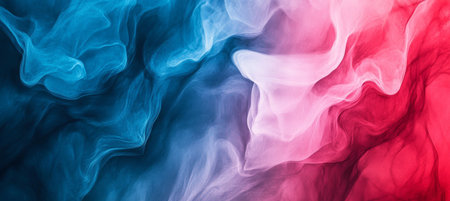 Stunning and vibrant flowing smoke textures create a harmonious and captivating blend of blue and red shades