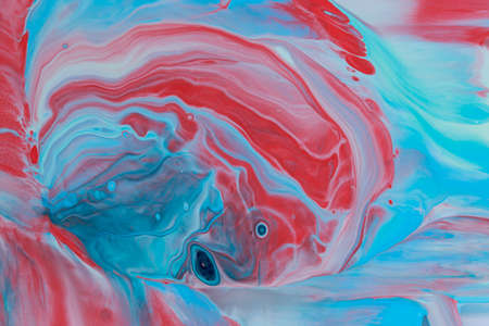 Close Up Colorful Red Blue White Fluid Pouring Abstract Art Acrylic Painting Texture Background
