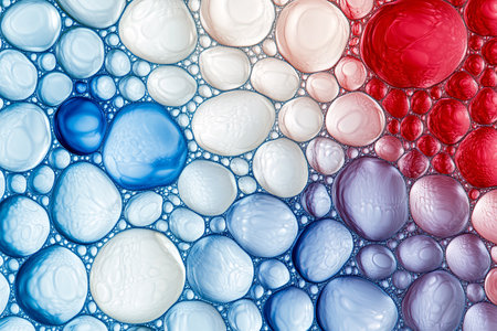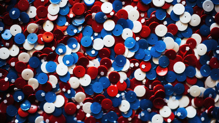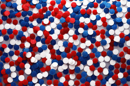 A colorful pattern red, white, and blue dots. dots are scattered all over image, creating a festive and celebratory atmosphere
