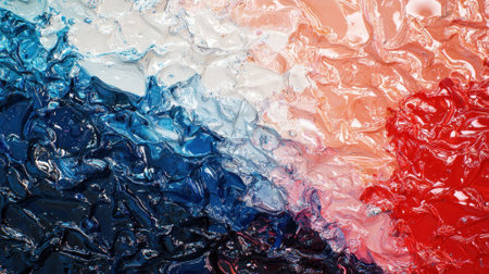 A vibrant composition showcases melting ice with striking blue, white, and red hues. The colorful layers blend together, creating a dynamic and eye-catching abstract design.