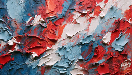 Hero detail focused entirely on the texture of thick, colliding red, white, and blue impasto strokes