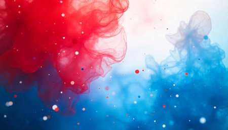 Red and blue liquid color blend with floating particles