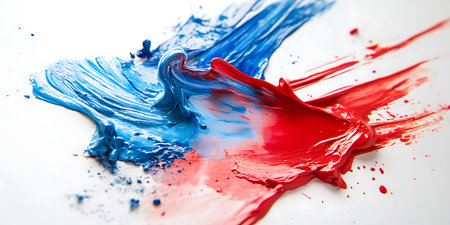 blue and red paint splashing on a white background, abstract background