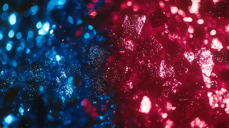 Red, blue and purple glitter bokeh background. Christmas and New Year concept.