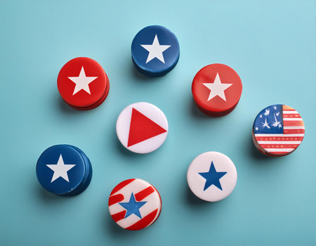 Vote Buttons Badge Isolated on White Background, 2020 US elections, panorama, copy space