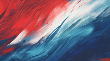 Vibrant strokes of red, blue, and white blend together in an abstract composition, radiating energy and artistic flair, perfect for modern decor.