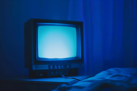 Person watching tv television series sofa retro spooky show documentary movie film couch sitting dark motion picture horror setting home cinema choosing channel remote control