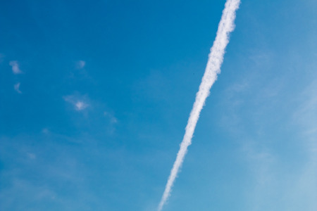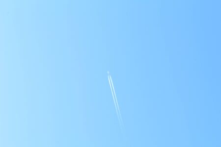 long trail of jet plane on blue sky. Aircraft on blue sky, Travel concept