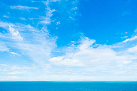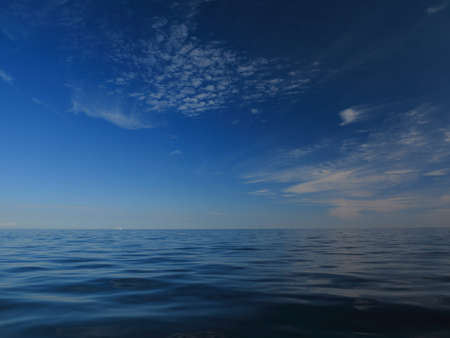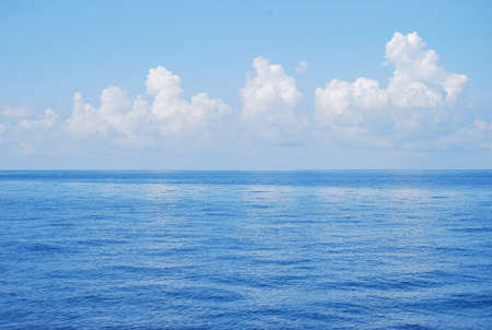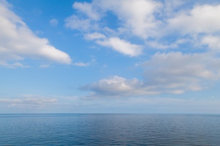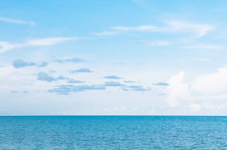 Blue horizon between the ocean and beautiful blue cloudy sky