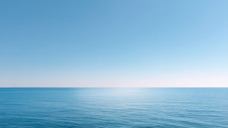 A vast and tranquil ocean surface meets a clear blue sky, showcasing gentle waves and a serene horizon. Ideal for relaxation and nature-themed projects.