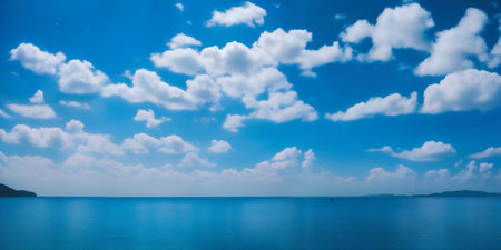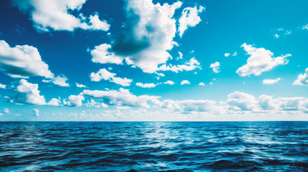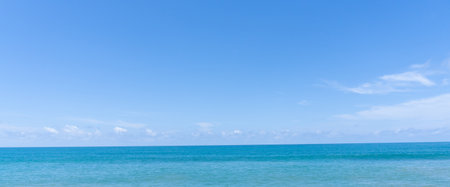 The front view in the morning sky is bright blue with clear white clouds. And the ocean deep indigo in daylight feeling calm, cool, relaxing. The idea for cold background and copy space on the top.