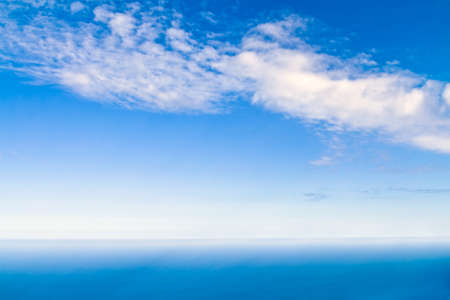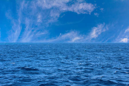 The Atlantic Ocean and clouds above the horizon in the blue sky. Sea view