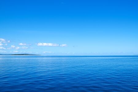 Empty vast blue tropical ocean seascape horizon and clear sky slightly clouds on summer day - Nature background wallpaper