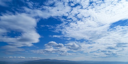 Blue sky with white fluffy clouds close-up