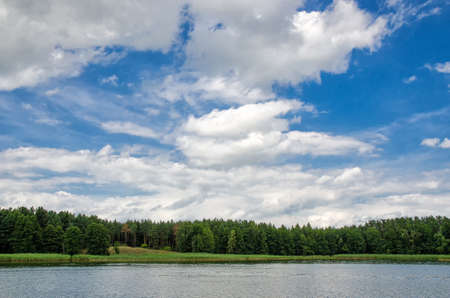 Sea landscape. Cloudy blue sky. Midday. Belarus.