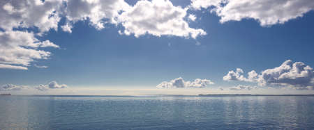 Sea and sky with clouds. Adriatic coast of Croatia. Calm sea surface.