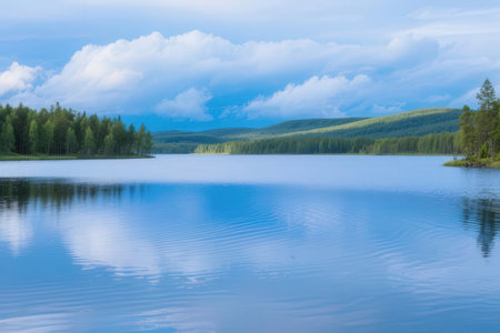 Serene lake reflecting a cloudy sky. Nord Europe