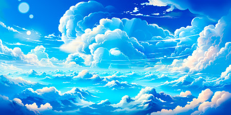 This image captures a stunning blue sky adorned with fluffy white clouds, creating a tranquil scene. Perfect for visuals related to nature, peace, or outdoor themes.