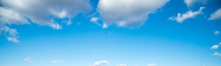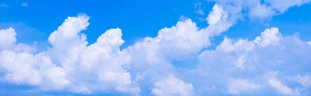 Fantastic soft white clouds against blue sky and copy space horizontal shape. Web banner. Website header.