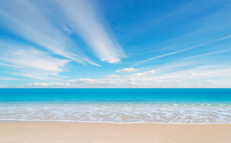 Beautiful tropical beach with blue sky and white clouds abstract texture background. Copy space of summer vacation and holiday business travel concept. Vintage tone filter effect color style.