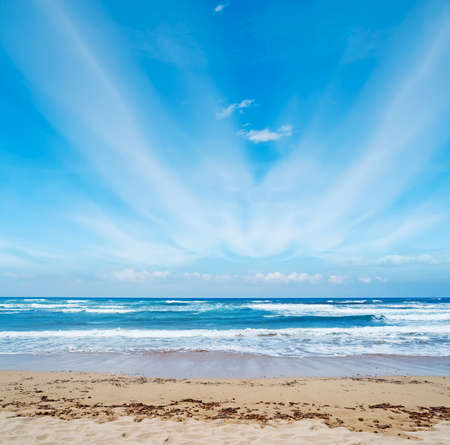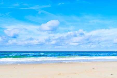 Sea, sand and blue sky. Sandy beach on the atlantic ocean