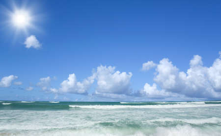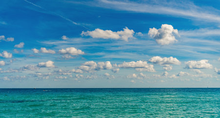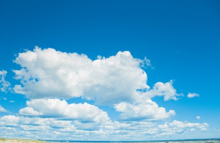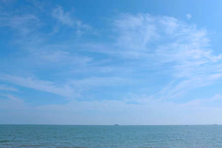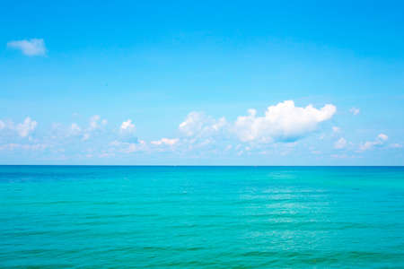 Beautiful summer blue sky and white clouds over calm sea in sunny day.