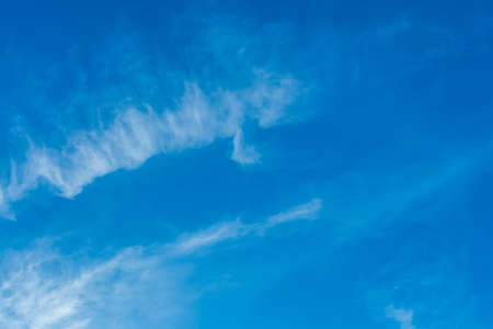 White cirrus clouds weather change wind natural background against the blue sky.