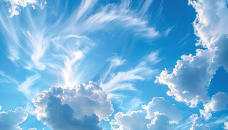 Beautiful sky with fluffy clouds and clear blue background, showcasing a serene atmosphere and natural beauty during daytime