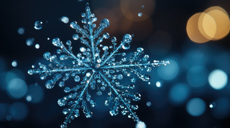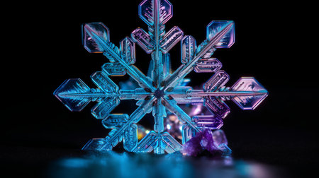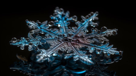 A close-up of a snowflakes unique shape and pattern. AI generated illustration