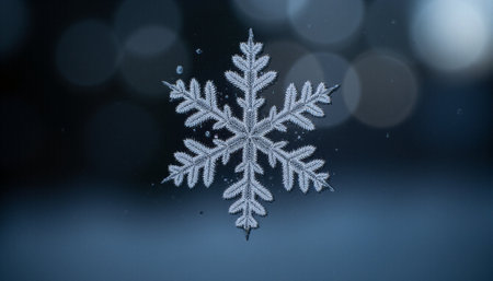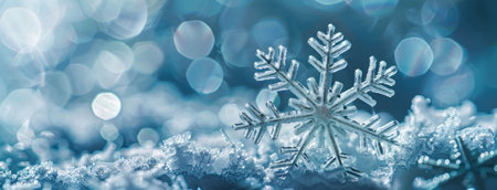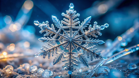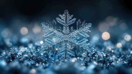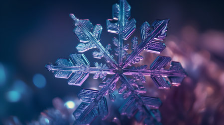 Delight in the beauty of a snow crystal, showcasing its unique details in an ethereal winter setting.