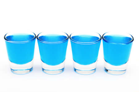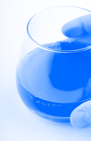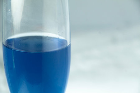 white background blue liquid wine glass, half glass photo, inside wine glass