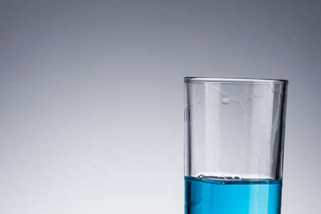 Laboratory glassware with blue liquid in a test tube. scientific laboratory flasks, droppers, Petri dishes, beakers and cylinders, laboratory equipment
