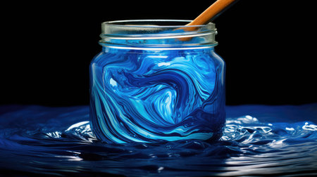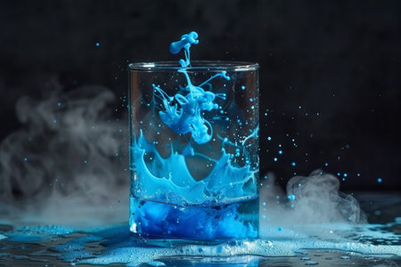 AI Generated. A glass of blue liquid is poured into a glass vertical