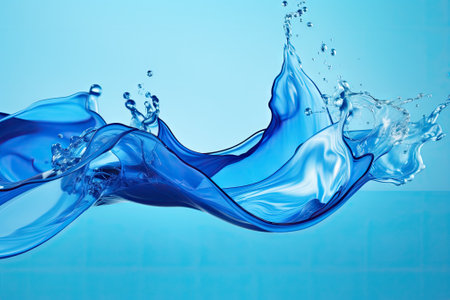 This stunning image captures the dynamic motion of a blue water splash, showcasing droplets and waves against a clean background, evoking freshness and beauty.