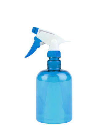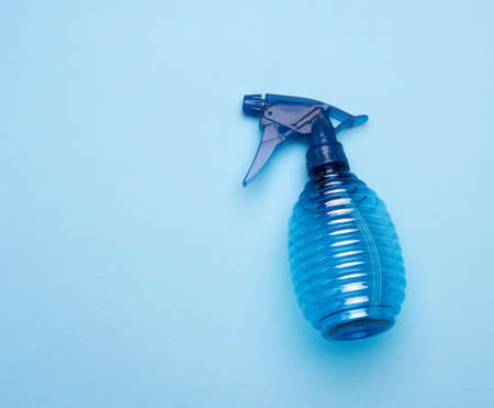 Spray with detergent on blue background. Housework, housekeeping and household concept