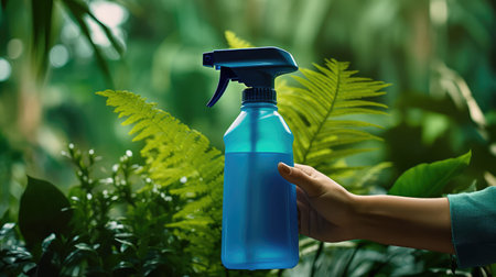 Clean hand holding plastic bottle spraying fresh water for hygiene generated by artificial intelligence