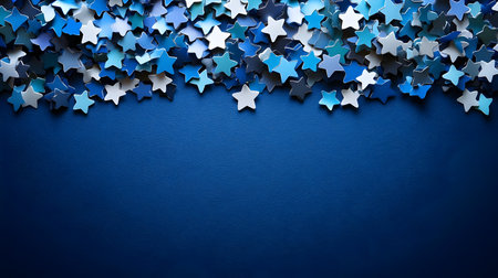 Gold stars scattered on a royal blue background, a festive and comfortable look generative ai