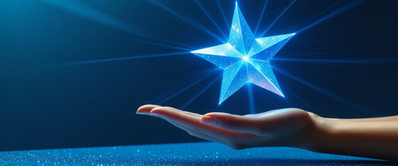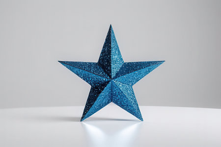 Vibrant blue star with glittering elements shines against a sparkling background. Perfect for creative projects, celebrations, or fantasy themes.