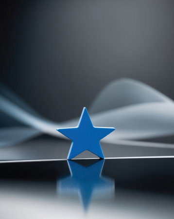 A close-up captures a translucent blue crystal star with multiple facets. The star sits on a textured gray surface with soft lighting. The image showcases geometric shapes and color gradients, offering potential for commercial applications. This versatile image could be used for various design projects.