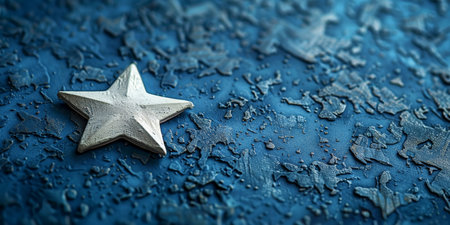Metal star on a textured blue background, ideal for themes of achievement and recognition. With Generative AI technology.