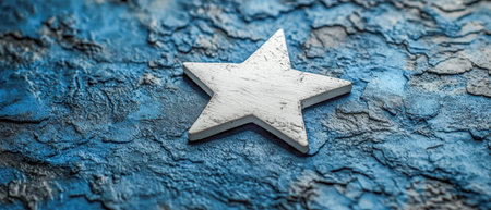 Presidents' Day. A white wooden star resting on a cracked, blue textured surface, symbolizing patriotism and celebration
