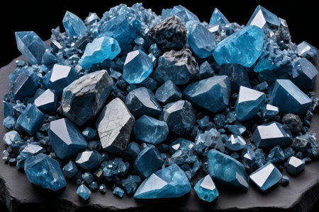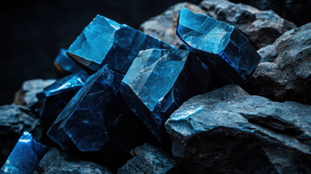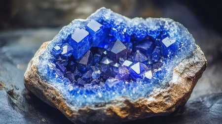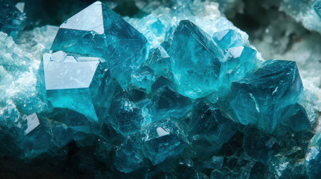 A close-up view of stunning blue mineral crystals showcases their detailed facets and textures. Perfect for geology enthusiasts and nature lovers, this image captures the striking vibrancy and beauty of natural formations.