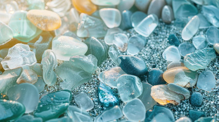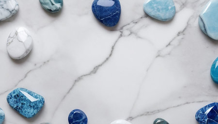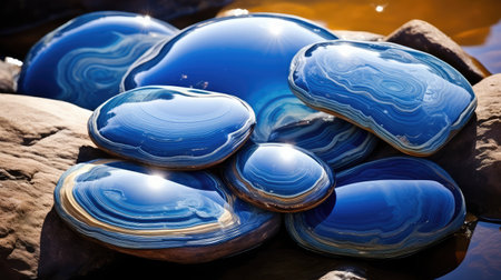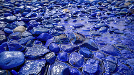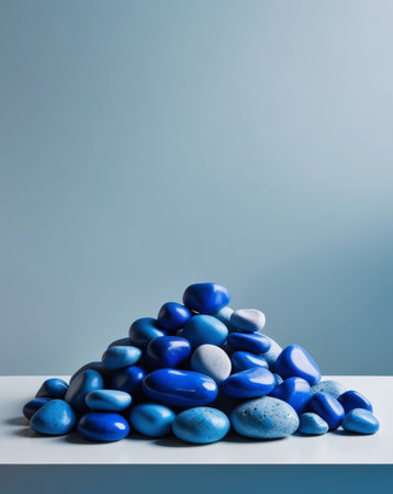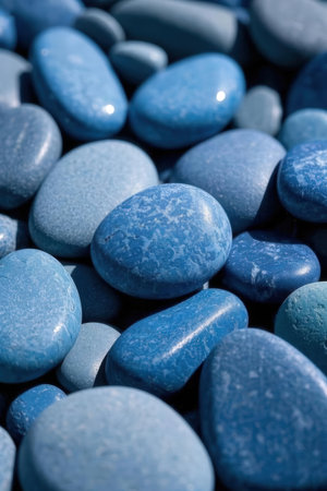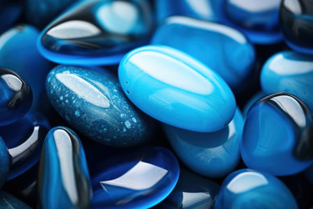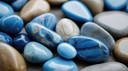 A stunning collection of smooth, polished pebbles in various shades of blue, creating a captivating and serene natural pattern